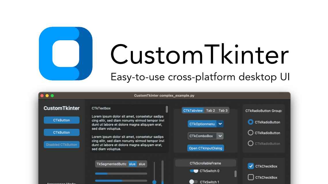 Pythonでデスクトップアプリをつくるためのツールです。デフォルトのTkinterよりUIが優れています。