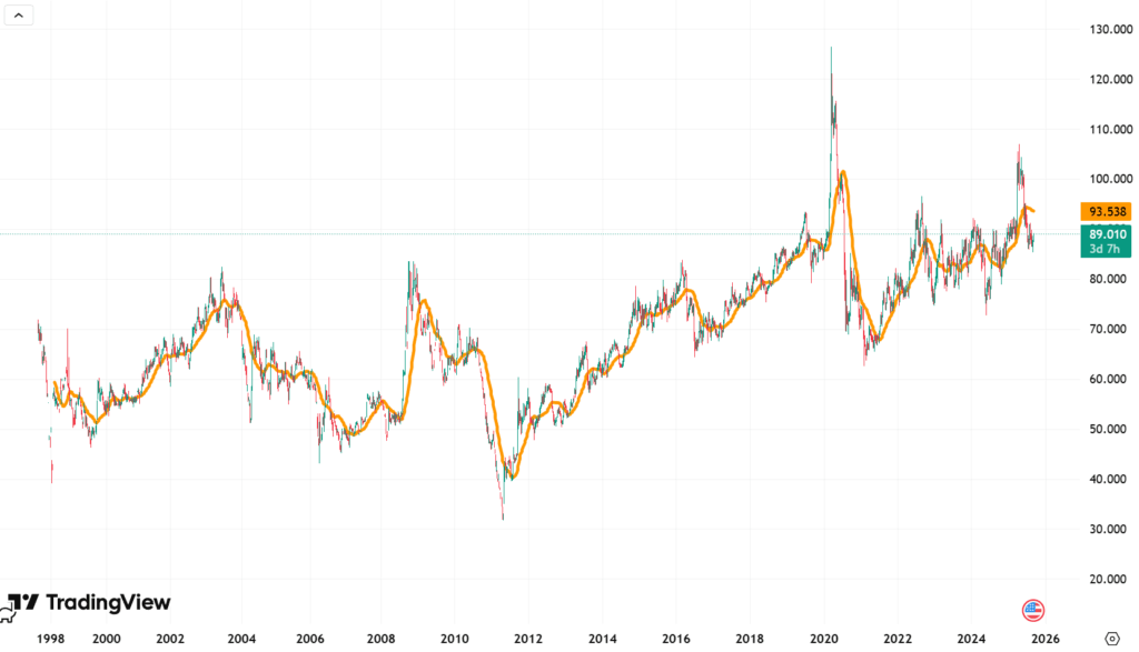 Gold to Silver Ratioが40以下だと銀が割高、80~100以上だと銀が割安とされますが、現在は90なので割安圏内