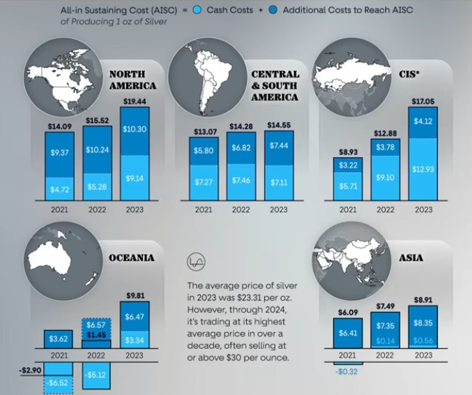 人件費(や原油・天然ガス価格)の上昇に伴い、銀の採掘コストも年々増加