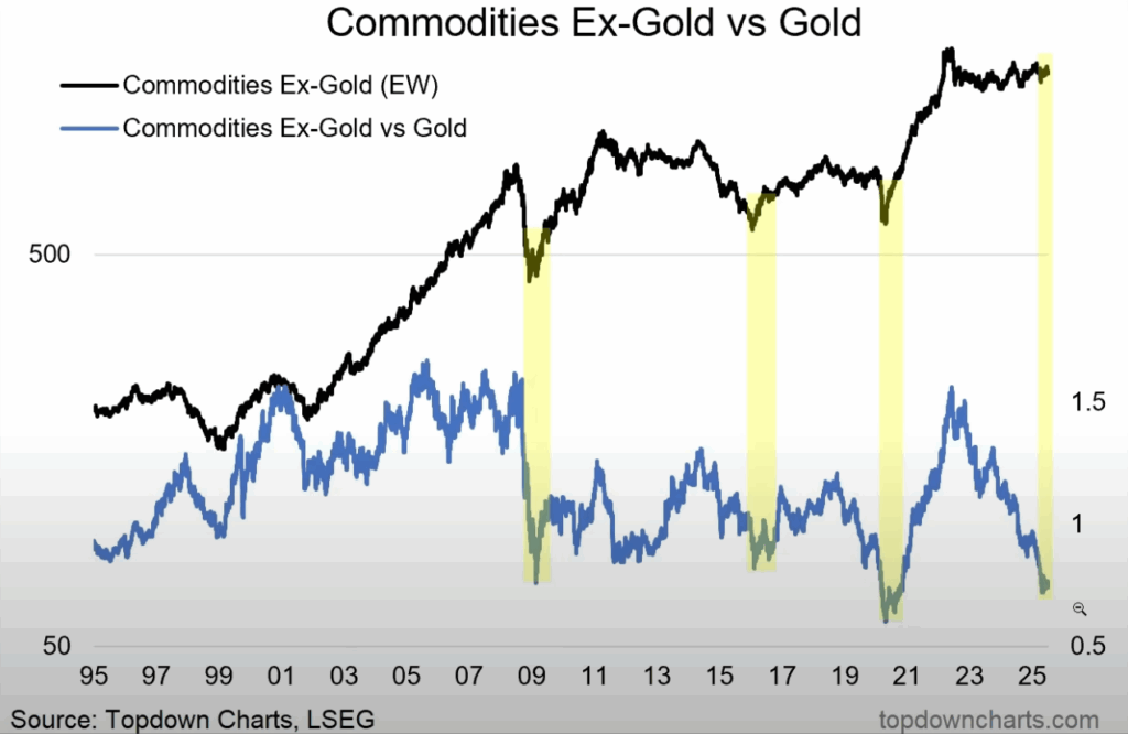 ゴールド価格とゴールド以外のコモディティ価格を比較したチャート