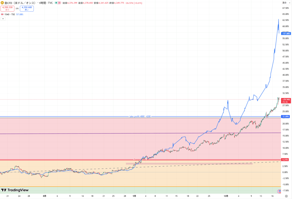 2025年9月から金価格と純金上場信託価格の間に乖離が生じ始めており、1.5ヶ月で20%の差が生じた