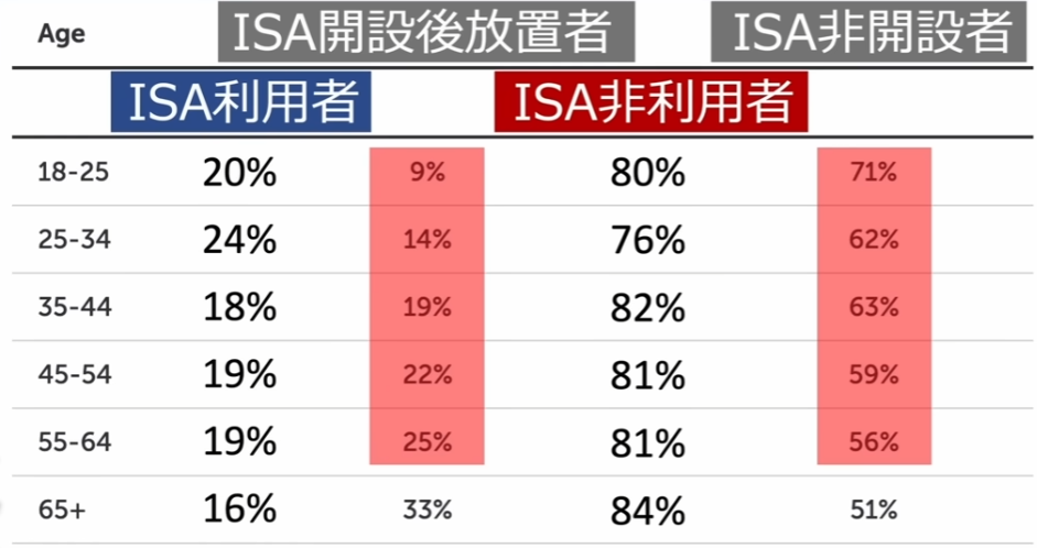 ISAにも口座開設しただけで使っていない人は20%程度存在する